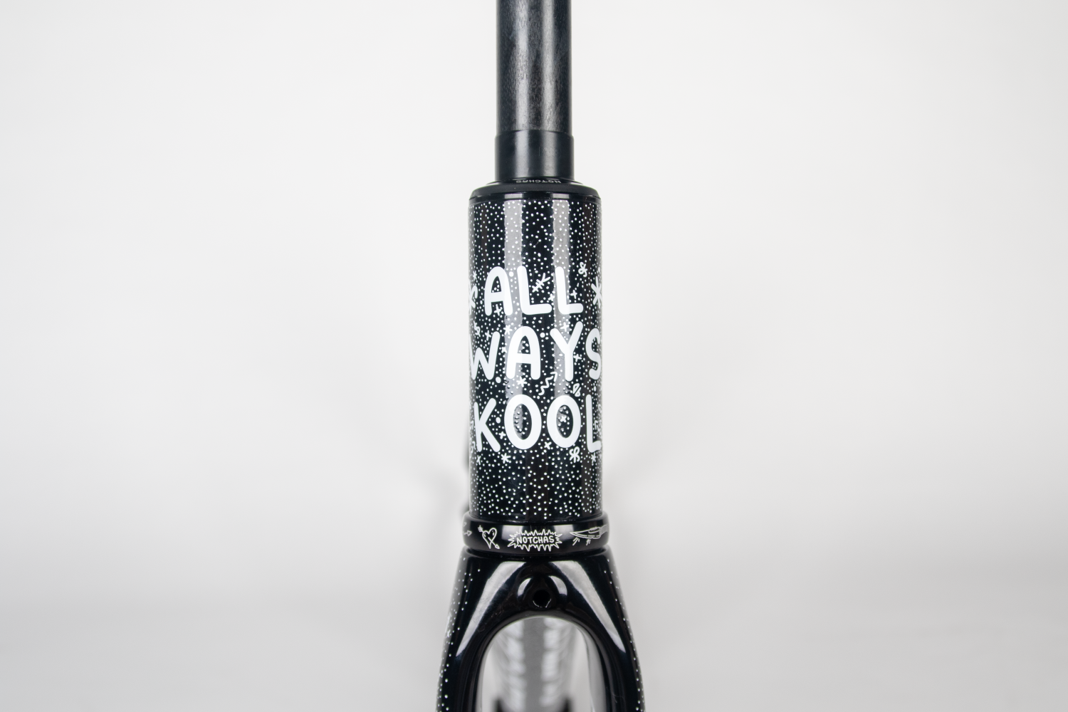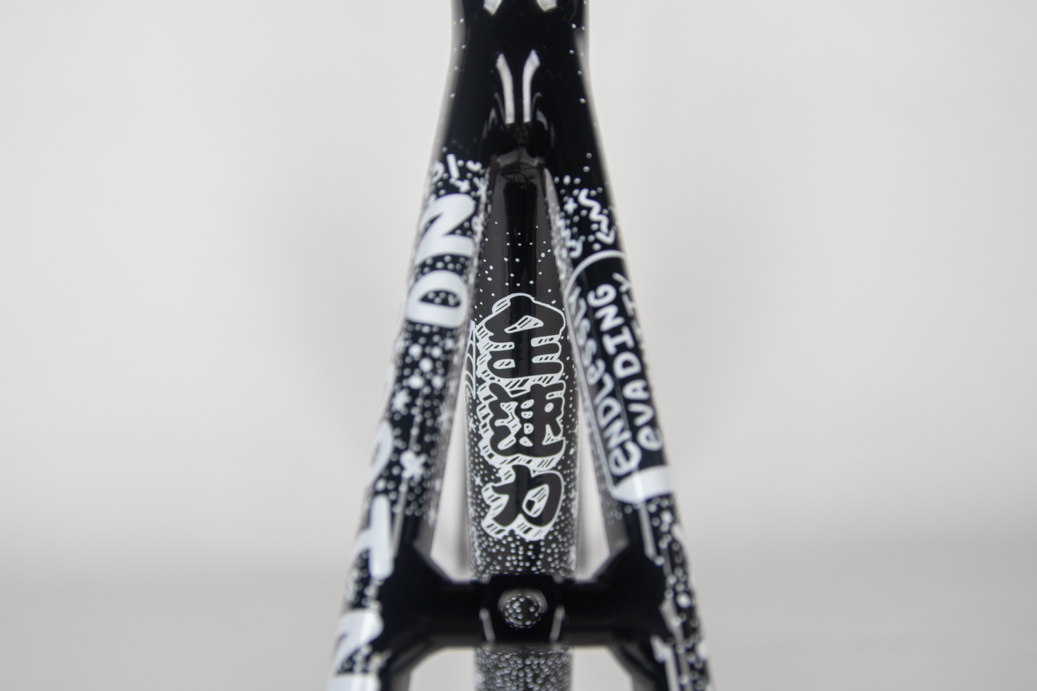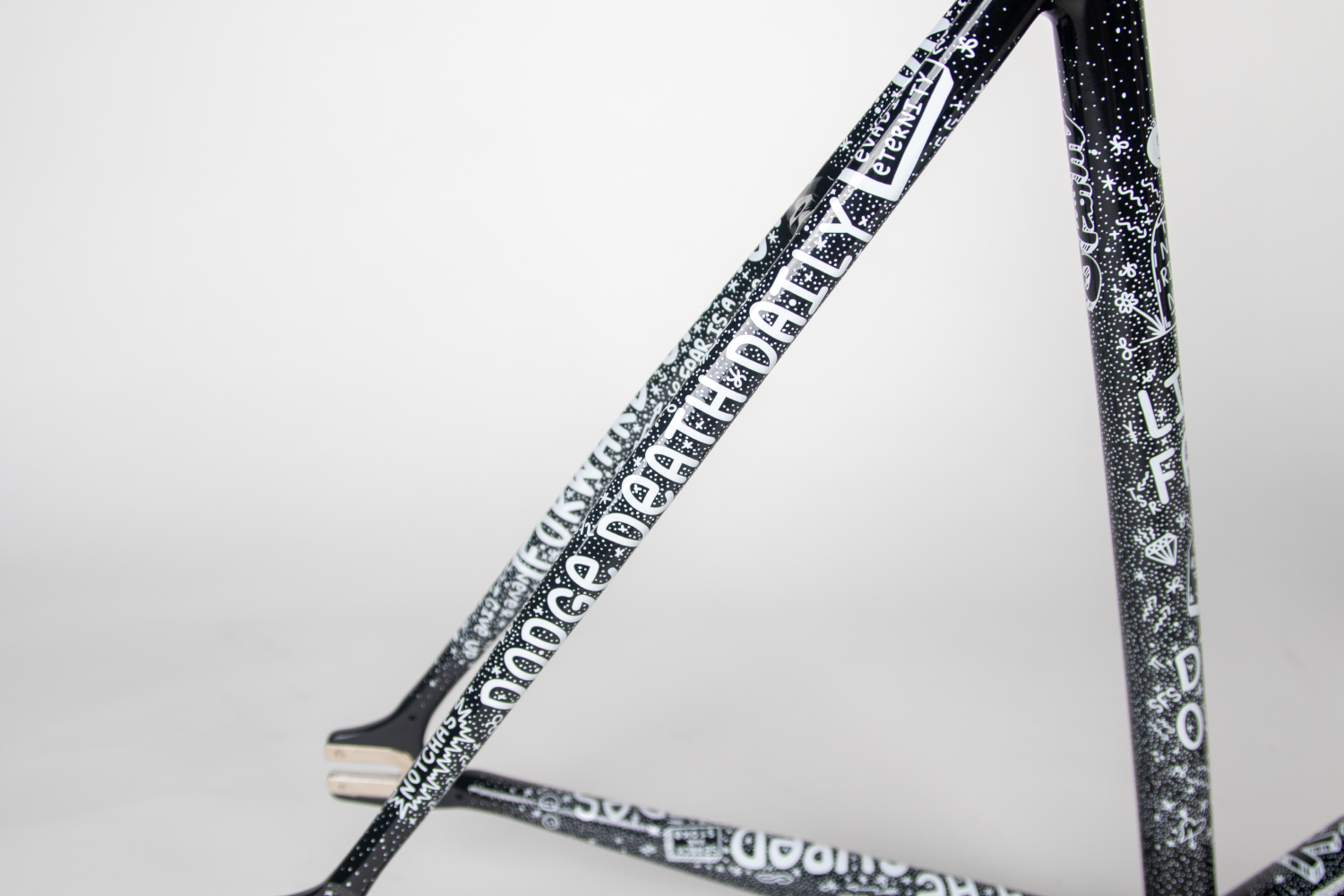 Known for his fearless racing style and unique artistic expression, Chas hand-painted illustrations across every corner of the frame, transforming it into a “rideable piece of art.”